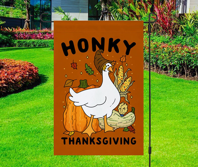 Goose Pumpkin Funny Thanksgiving Yard Flag